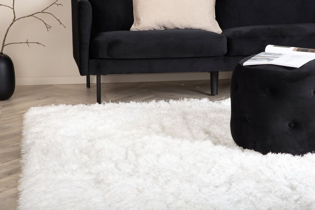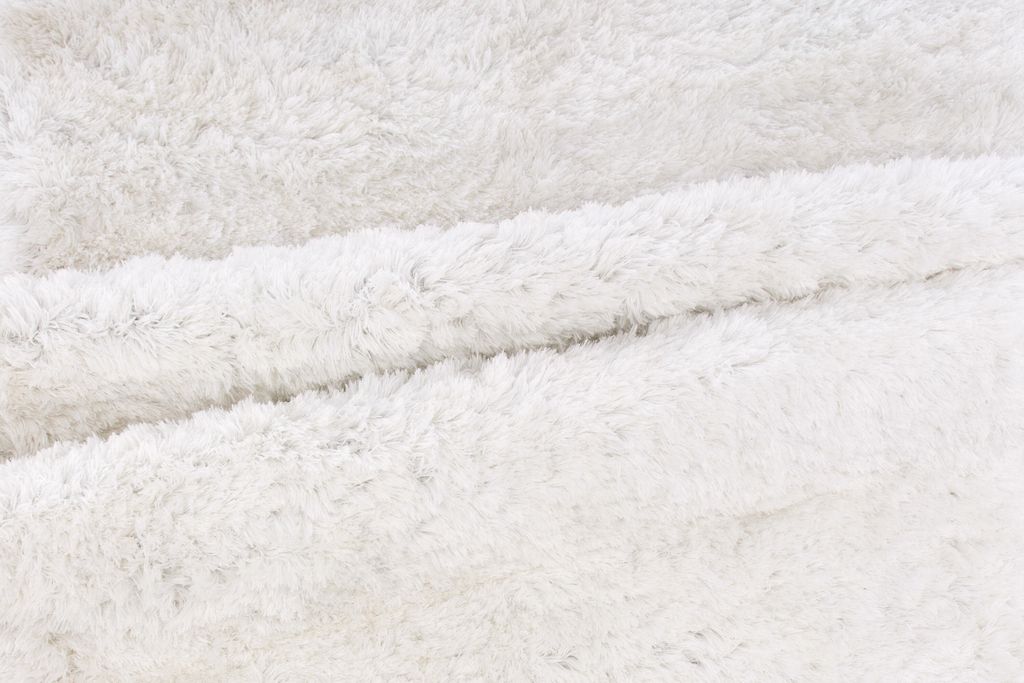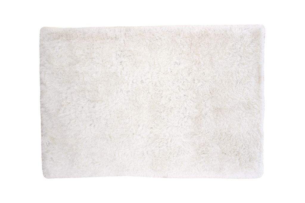 Fluffig vit matta i polyester med skimrande lyster, ger elegans och värme till alla rum.