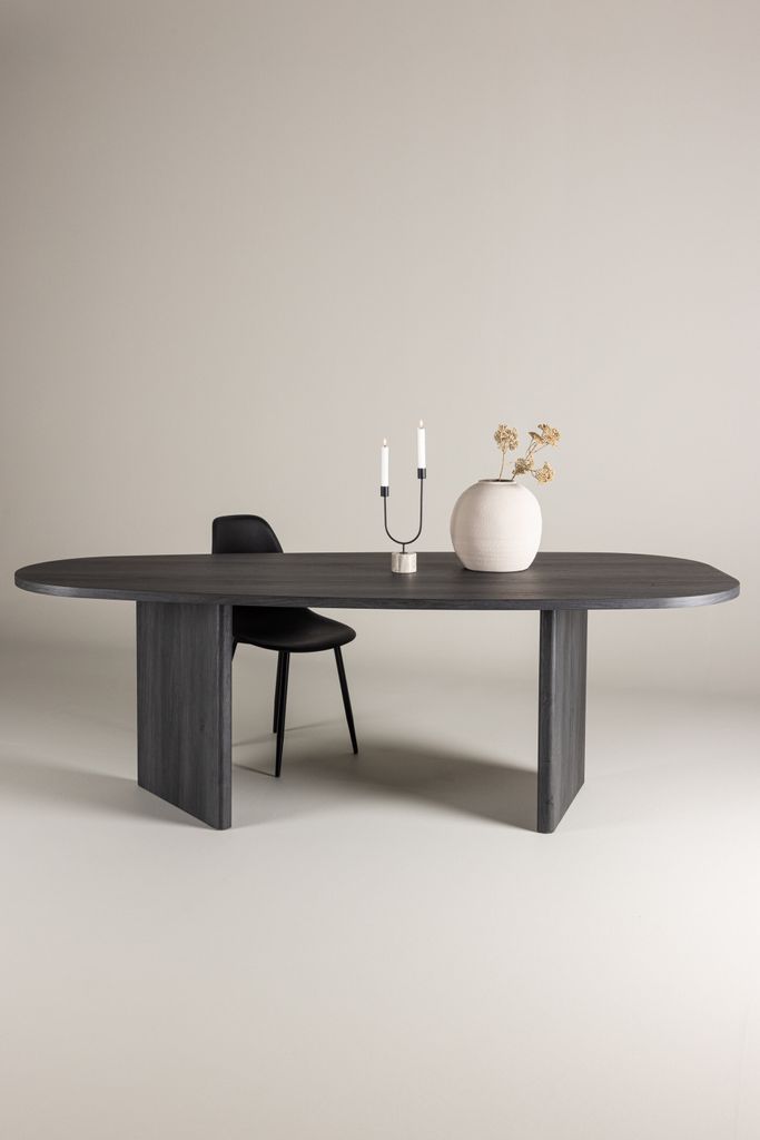 Grönvik matbord i svart MDF, 220x100 cm. Elegant och rymligt, perfekt för familjemåltider.