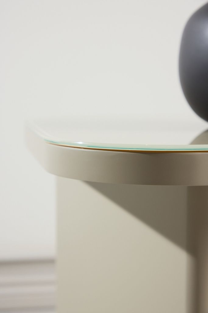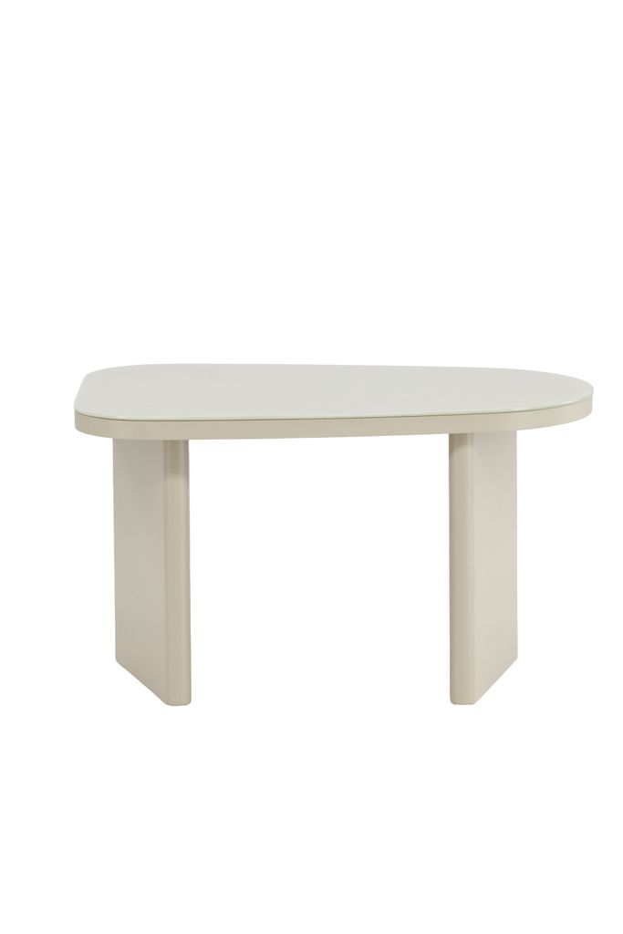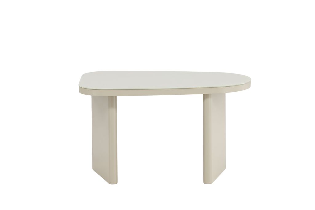 Grönvik sidobord kombinerar stilren design med en elegant glasskiva och mjuk beige ton. Perfekt för varierande inredningar.