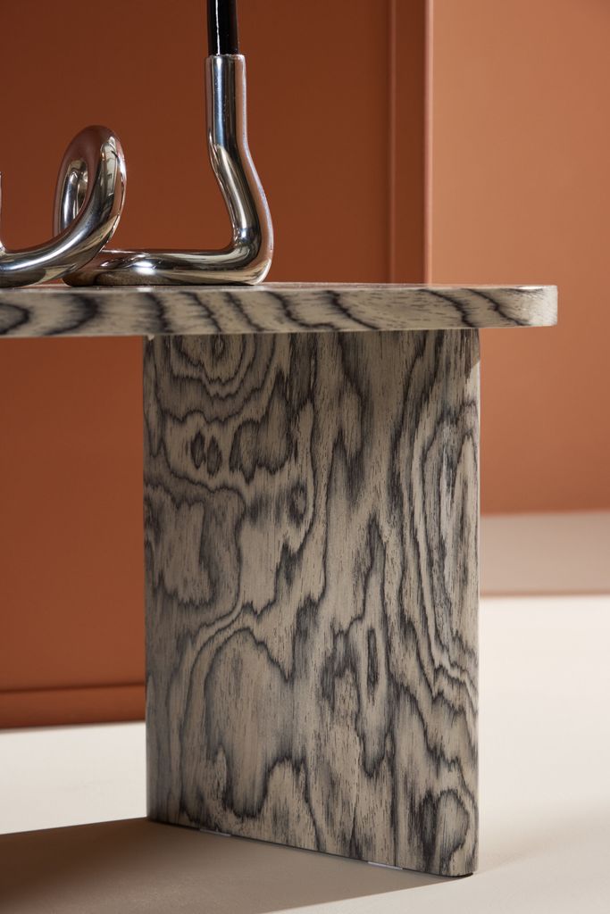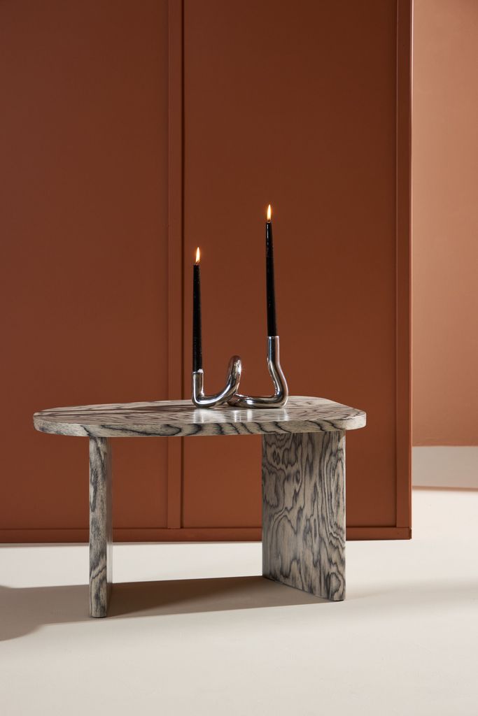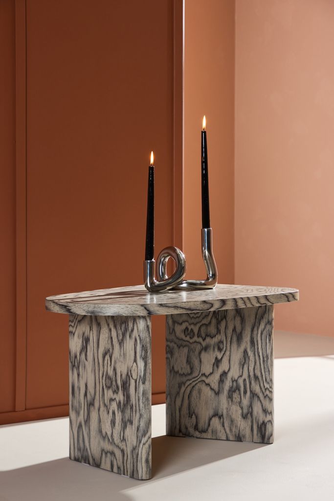 Bordsskivan pryds av ett iögonfallande mönster där toner av svart och grått samverkar för att skapa ett dynamiskt och modernt uttryck. Mönstret ger en unik textur och djup, vilket gör det till en naturlig blickfångare. Färgpaletten är elegant och mångsidig, vilket gör att Grönvik enkelt integreras i olika inredningsstilar – från industriell till minimalistisk eller eklektisk.