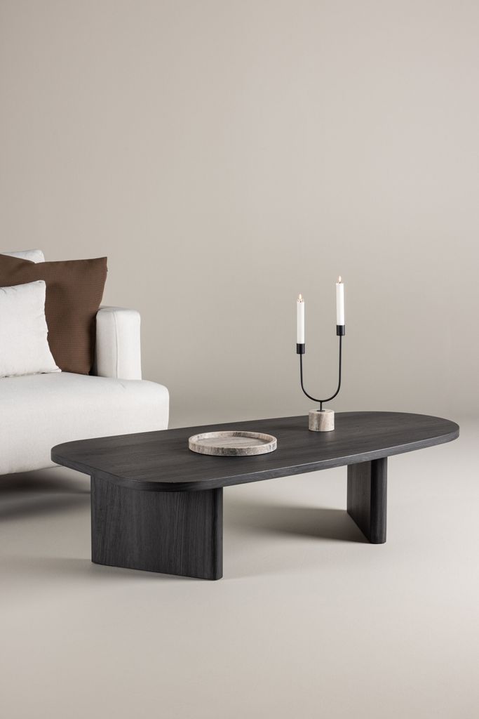 Elegant och tidlöst soffbord i djupsvart MDF, perfekt för vardagsrummet.