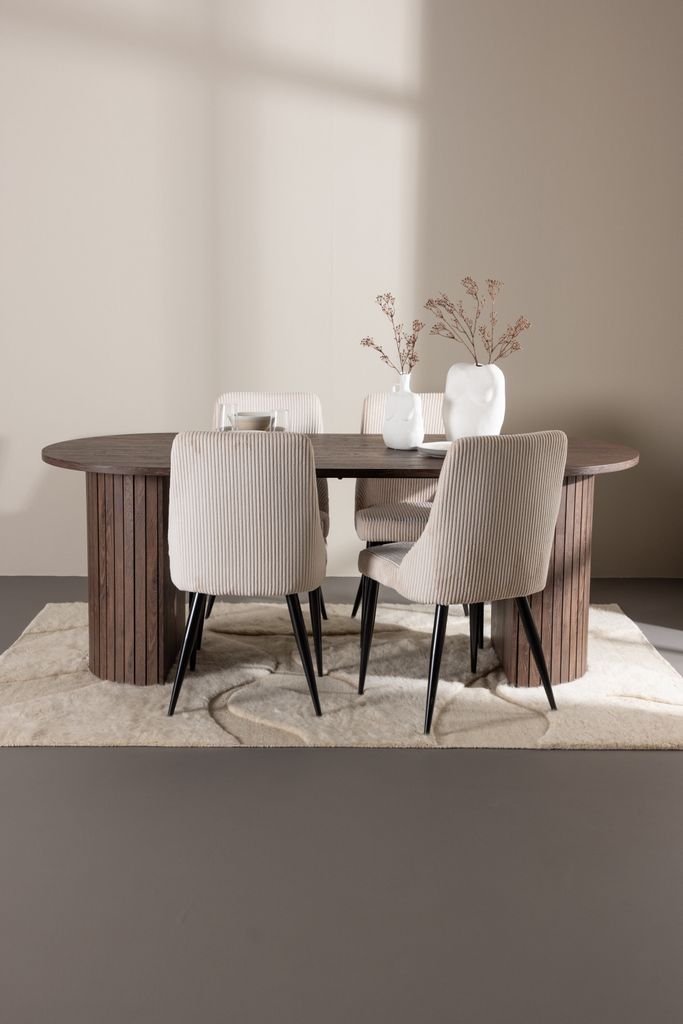 Tillsammans skapar Leone matstolen och Härön matbordet en inbjudande miljö som är både funktionell och estetiskt tilltalande, perfekt för vardagliga måltider såväl som speciella tillfällen.