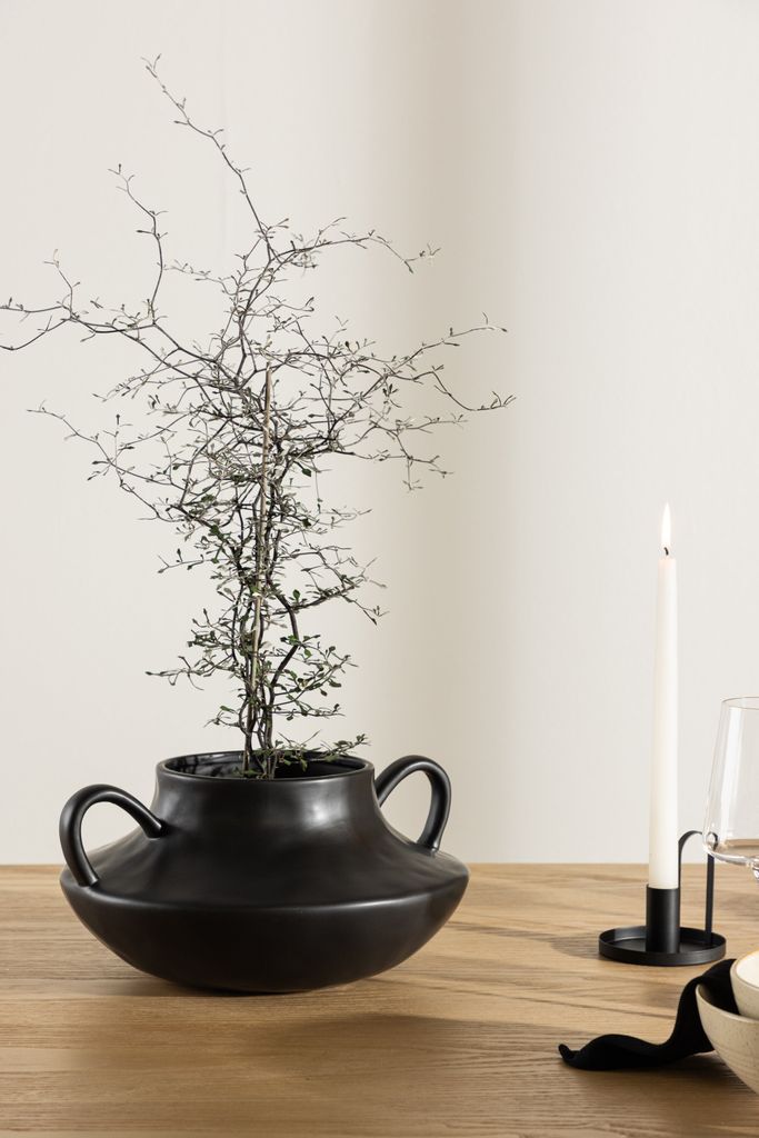 Den matta, svarta ytan ger en tidlös elegans som passar alla inredningsstilar, från modernt till klassiskt. Den är perfekt både som en fristående dekorationsdetalj och som en del av en blomsterarrangemang. Placera den på ditt bord eller i fönstret för att skapa en iögonfallande visuell effekt.