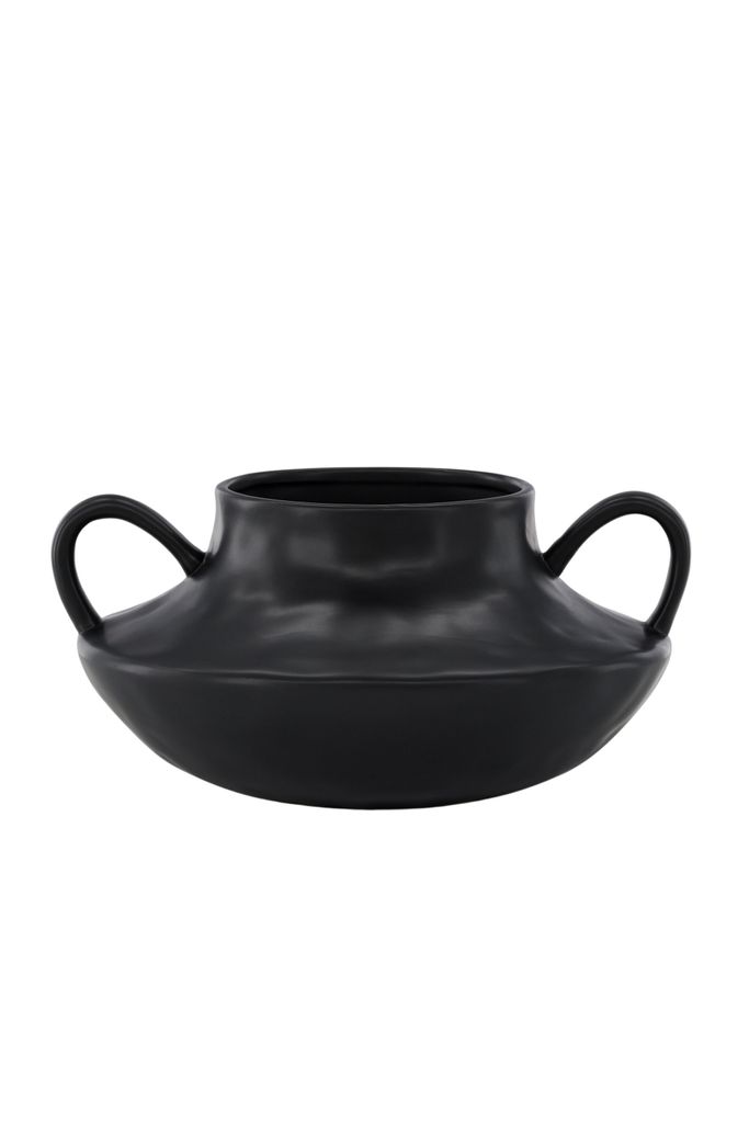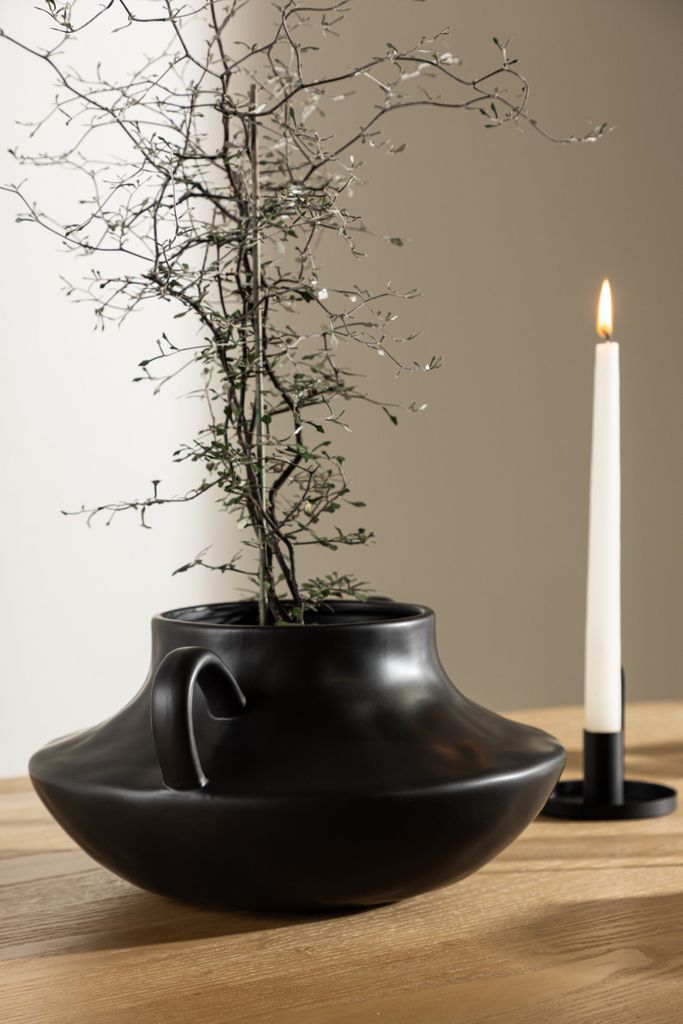 Upptäck Venture Home Holda, den perfekta kombinationen av modern design och funktionalitet. Denna svarta keramikkruka är tillverkad av högkvalitativt stengods, vilket ger den både hållbarhet och en sofistikerad estetik. Holda kännetecknas av sin släta, runda form med unika öglor på sidorna, vilket gör den idealisk för att framhäva dina favoritblommor.