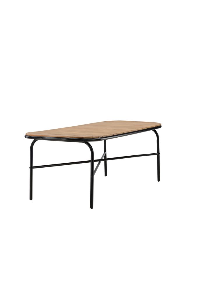 Elegant matbord i acacia och stål med rundade kanter, perfekt för uteplatsen.