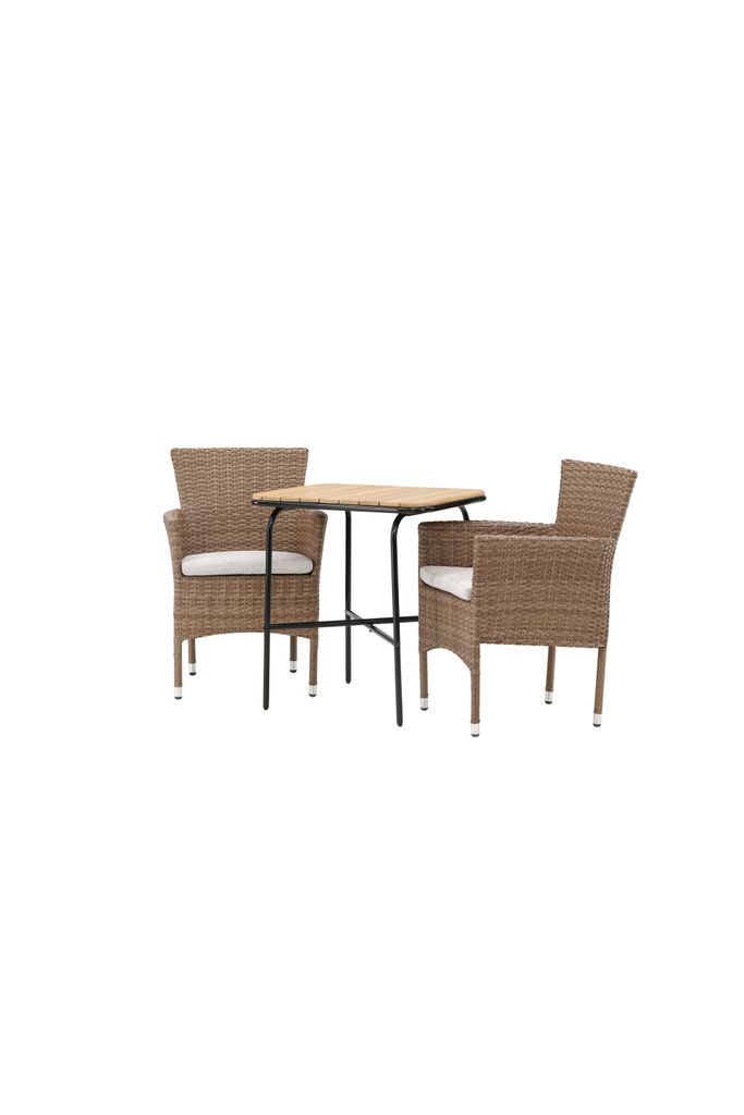 Oavsett om du bjuder in till en eftermiddagsfika eller bara vill njuta av en stunds avkoppling, så erbjuder denna matgrupp den perfekta platsen. Bordets mått är 74x70x55 cm, vilket gör det idealiskt för mindre ytor utan att kompromissa med stil eller funktion.