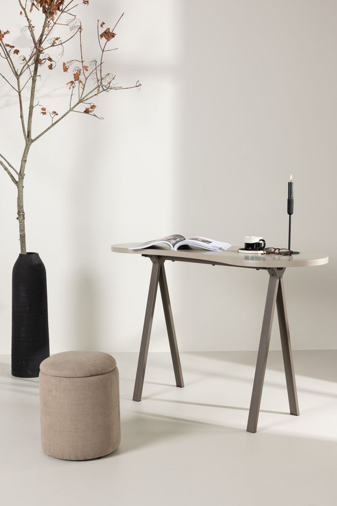 Skrivbordets MDF-bordsskiva ger en hållbar och estetiskt tilltalande yta, medan de eleganta stålbenen ger stabilitet och komplementerar den moderna designen. Holmestrands unika form med mjuka kanter erbjuder inte bara funktionalitet utan också en estetisk tilltalande arbetsyta.