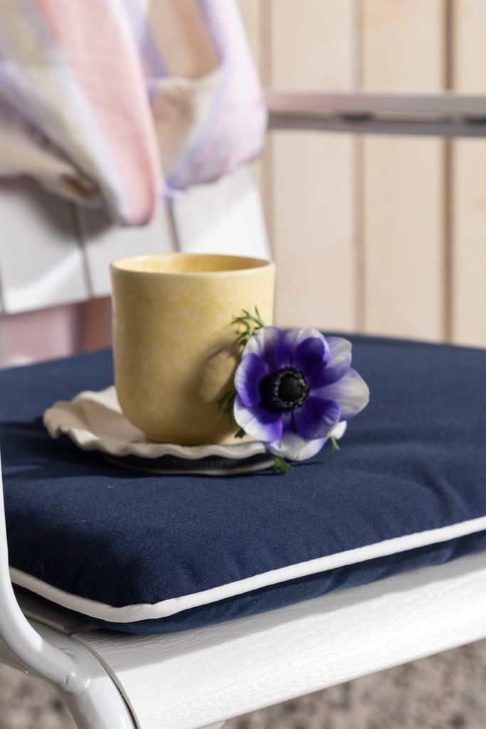 Komfortabel sittdyna i blått för Holmsund-serien, tillverkad i polyester och bomull. Perfekt för långa, avkopplande måltider.