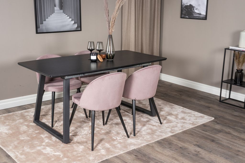 Venture Home Inca & Velvet Rektangulärt Matbord 160 x 85 Svart + 4 st Matstolar Gammelrosa