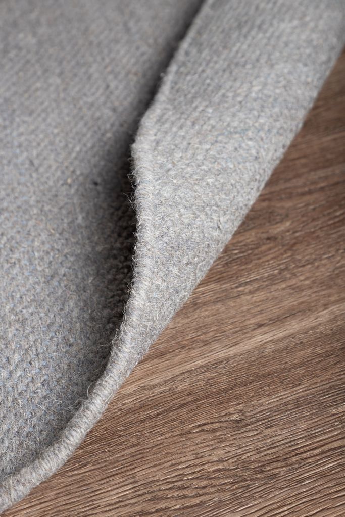 Handvävd rund ullmatta i tidlös grå färg med en stilren design, slitstark och lyxig för alla rum.