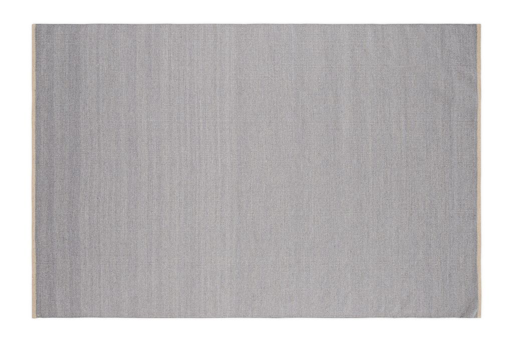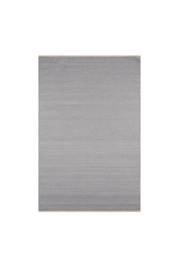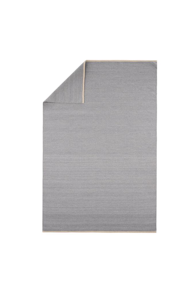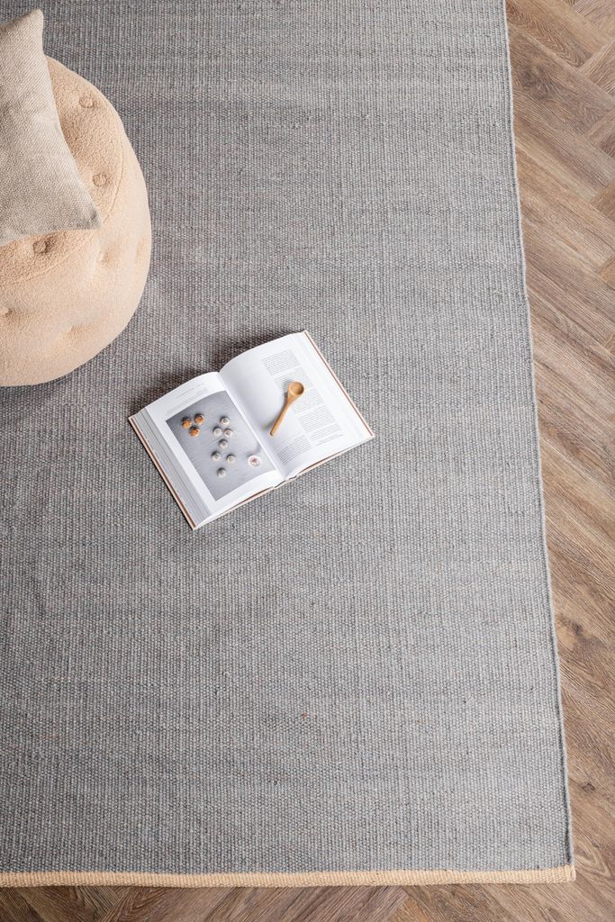Handvävd grå ullmatta med brun naturfärgad kant. Tidlös och slitstark design för alla rum.
