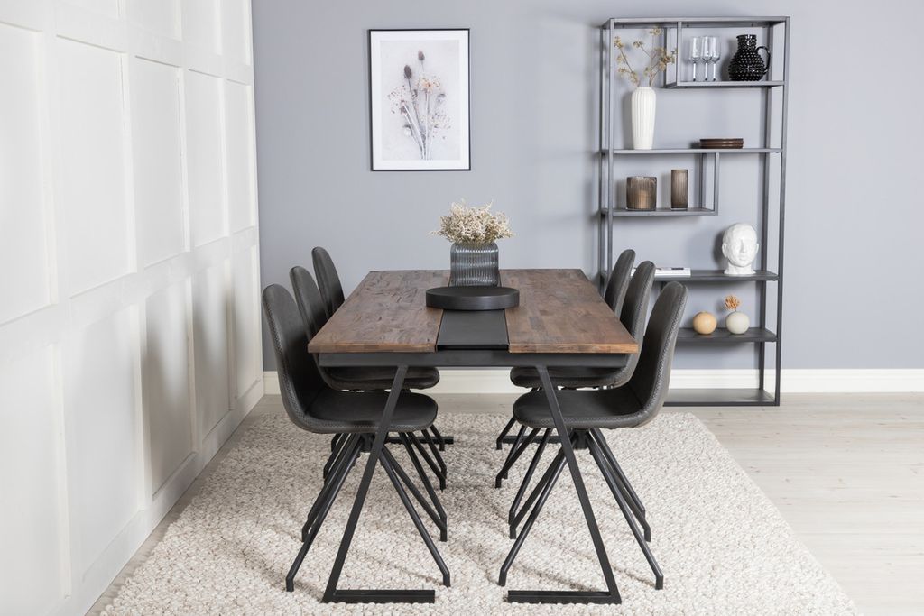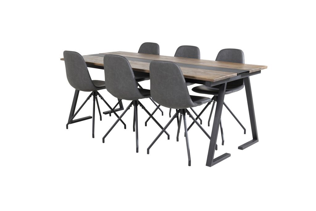 Venture Home Jakarta & Polar Rektangulärt Matbord 200 x 90 Svart + 6 st Matstolar Svart