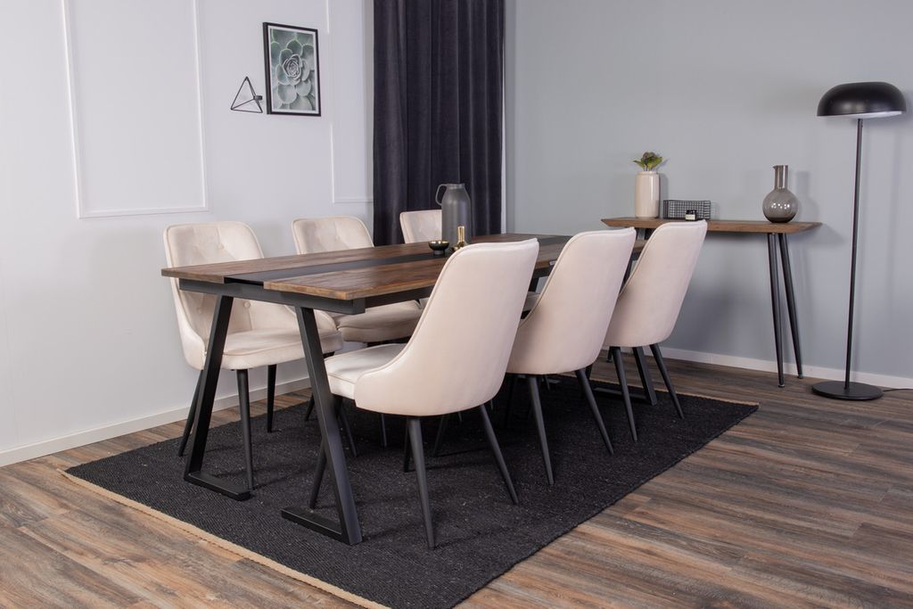 Venture Home Jakarta & Velvet Deluxe Rektangulärt Matbord 200 x 90 Svart + 6 st Matstolar Beige