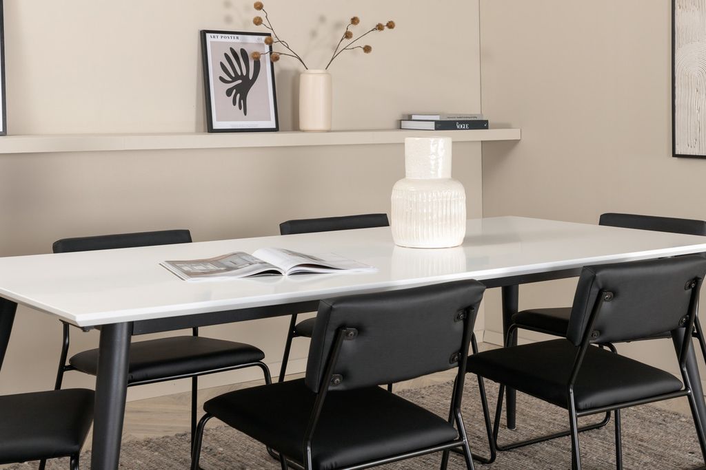 Venture Home Jimmy & Kenth Rektangulärt Matbord 195 x 90 Vit + 6 st Matstolar Svart