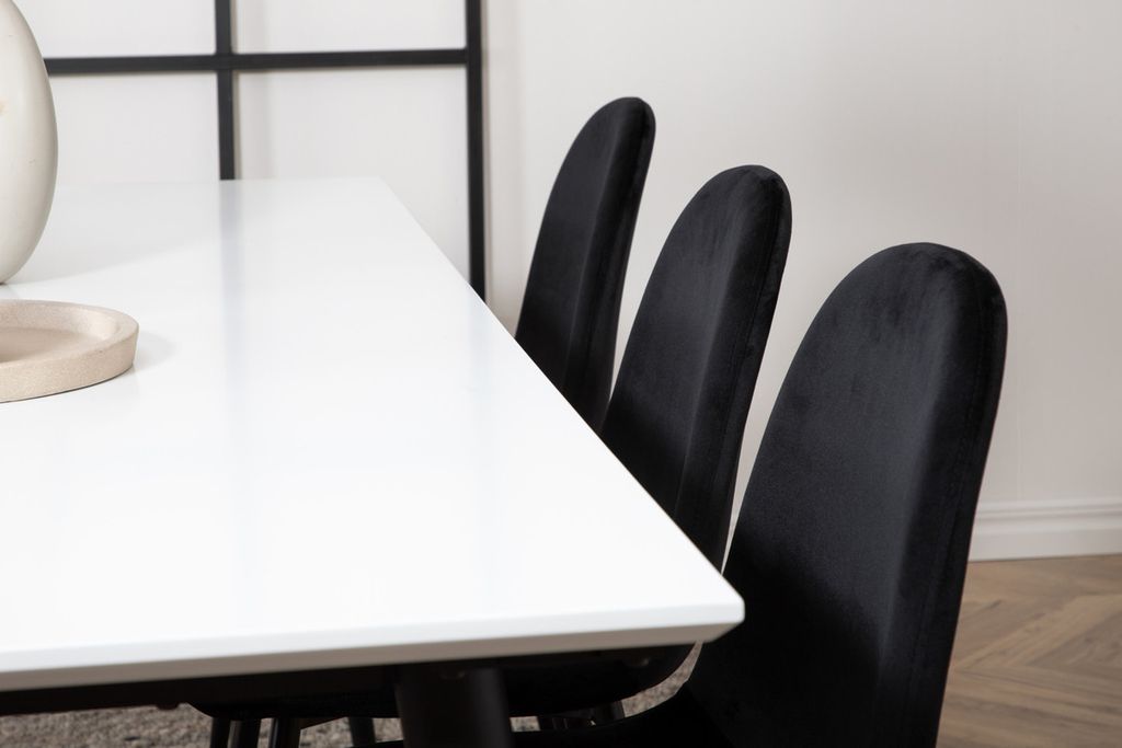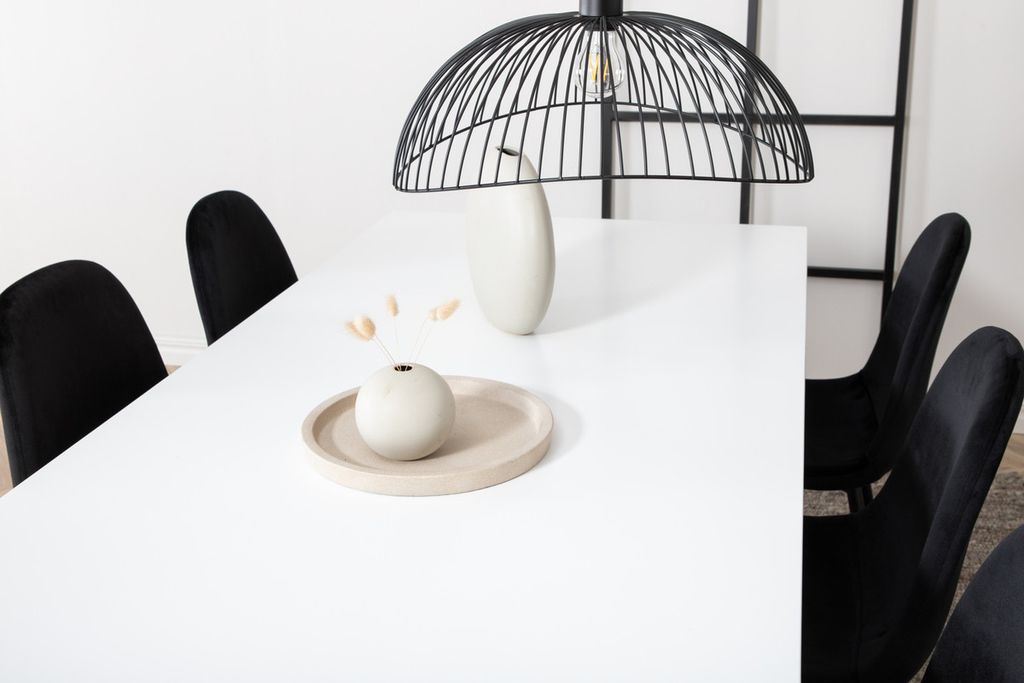 Venture Home Jimmy & Polar Rektangulärt Matbord 195 x 90 Vit + 6 st Matstolar Svart