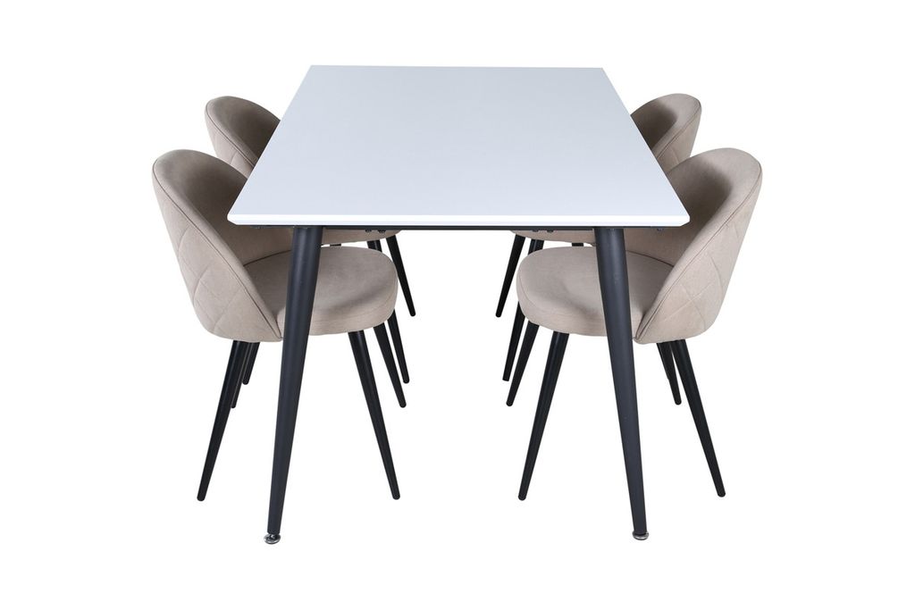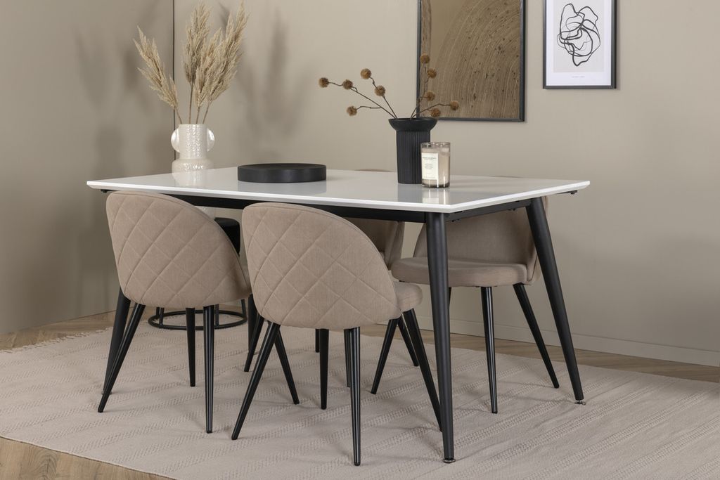 Venture Home Jimmy & Velvet Rektangulärt Matbord 150 x 90 Vit + 4 st Matstolar Beige