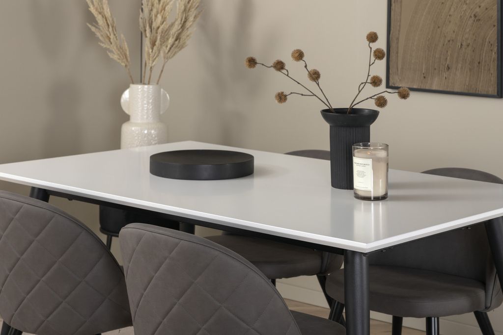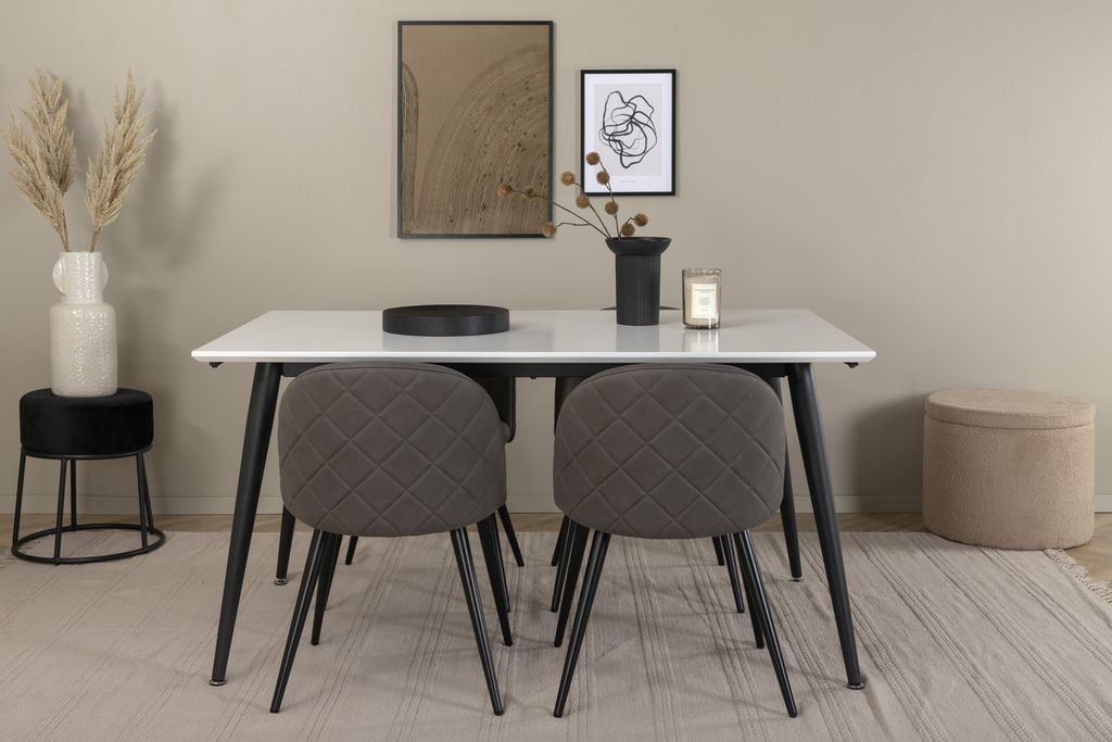 Venture Home Jimmy & Velvet Rektangulärt Matbord 150 x 90 Vit + 4 st Matstolar Grå