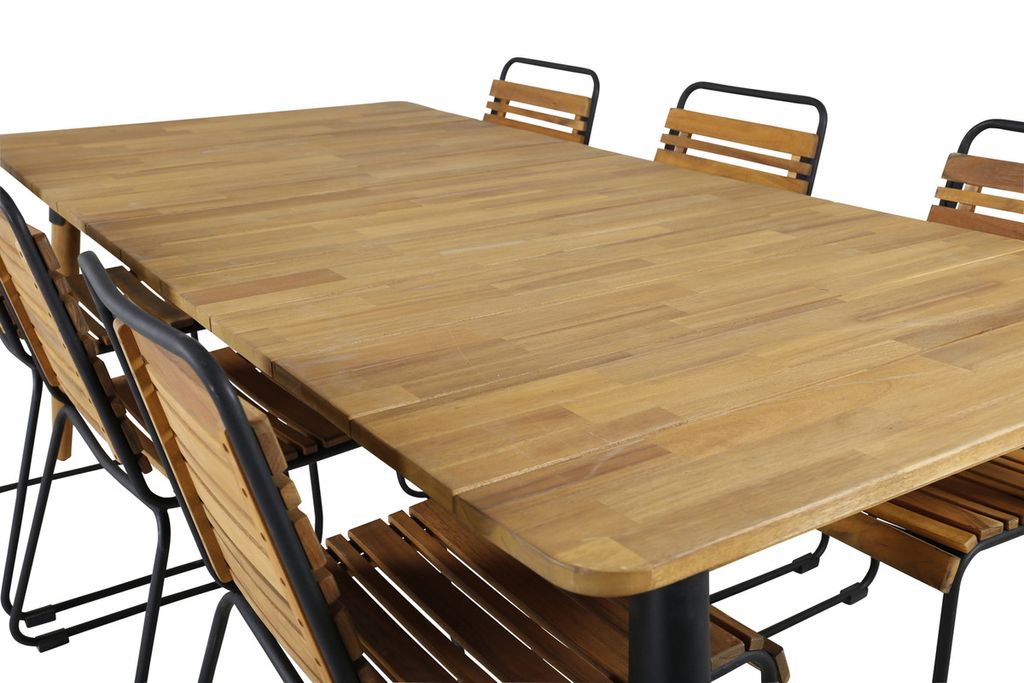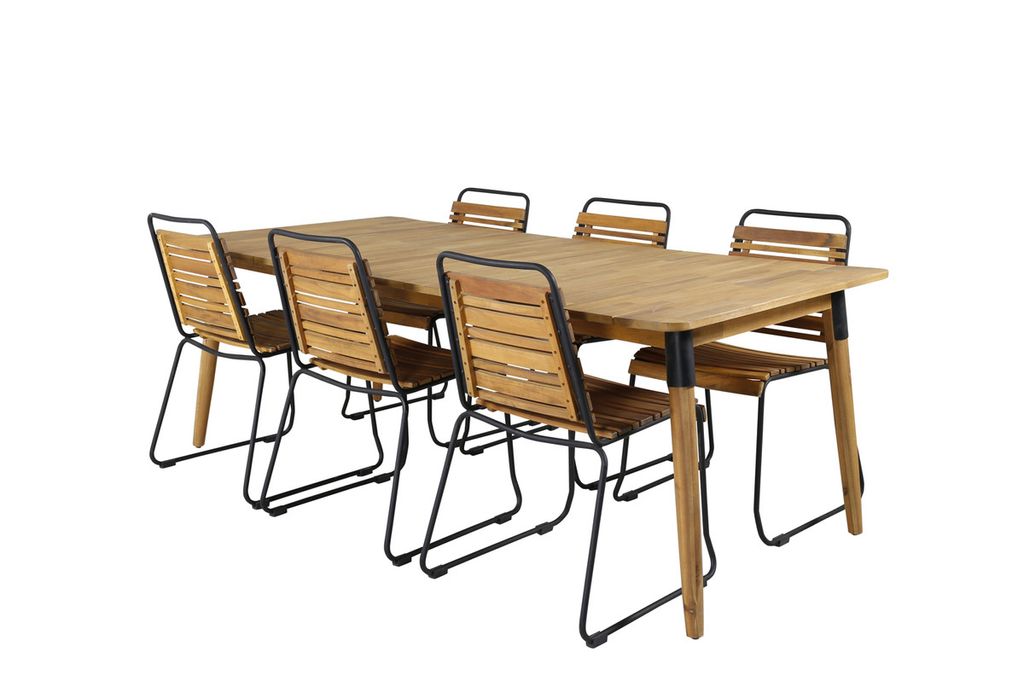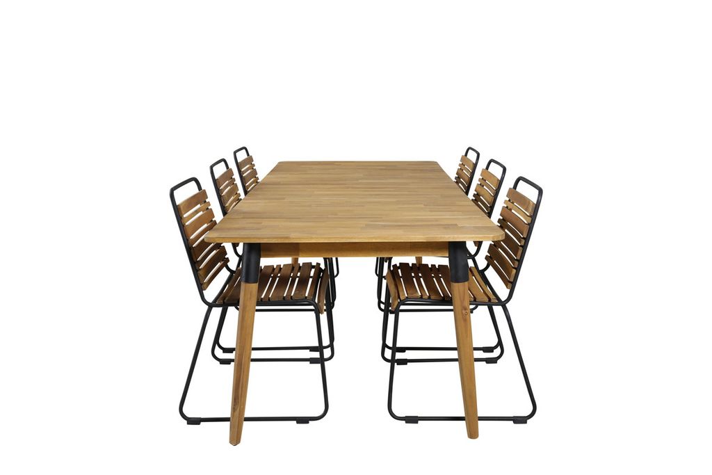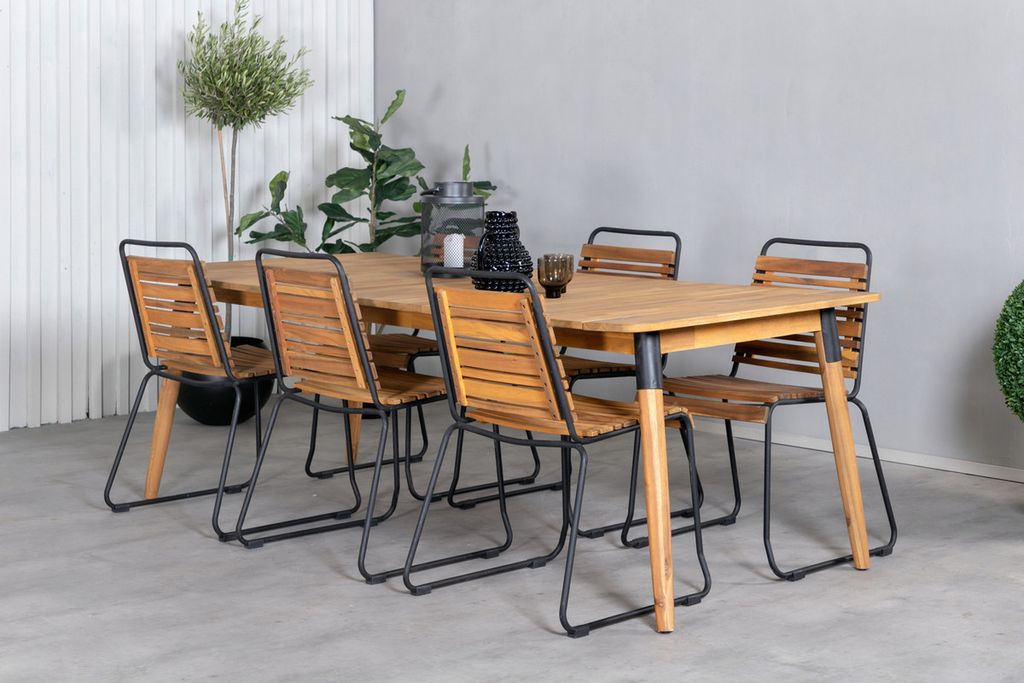 Vad mer kan man önska än en matgrupp som både är trendsäker, praktisk och rymmer plats för alla nära och kära? Det är precis vad den här kombinationen i klassisk trä-look erbjuder! Matbord Julian i snyggt akacia tillsammans med våra dekorativa matstolar i serien Bois. Så utöka dina middagsinbjudningar och njut av härliga sommarkvällar tillsammans på uteplatsen!