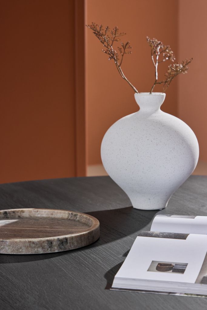 Den runda formen uppmuntrar till social interaktion och gör bordet enkelt att placera i olika typer av rum och möblemang. Den eleganta svarta ytan ger bordet en tidlös och stilfull karaktär, vilket gör att det enkelt kan kombineras med olika inredningsstilar – från modern minimalism till klassisk elegans.