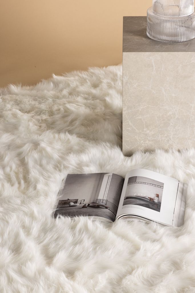 Förvandla ditt hem med den lyxiga och mjuka Katy-mattan i vit fuskpäls. Perfekt för en stilfull och inbjudande atmosfär.