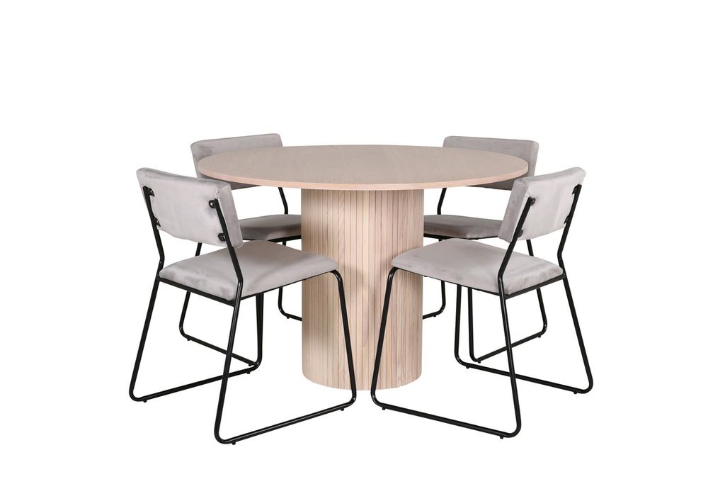 Venture Home Kenth & Bianca 4 st Matstolar Grå + Runt Matbord ⌀110 Vitputsad