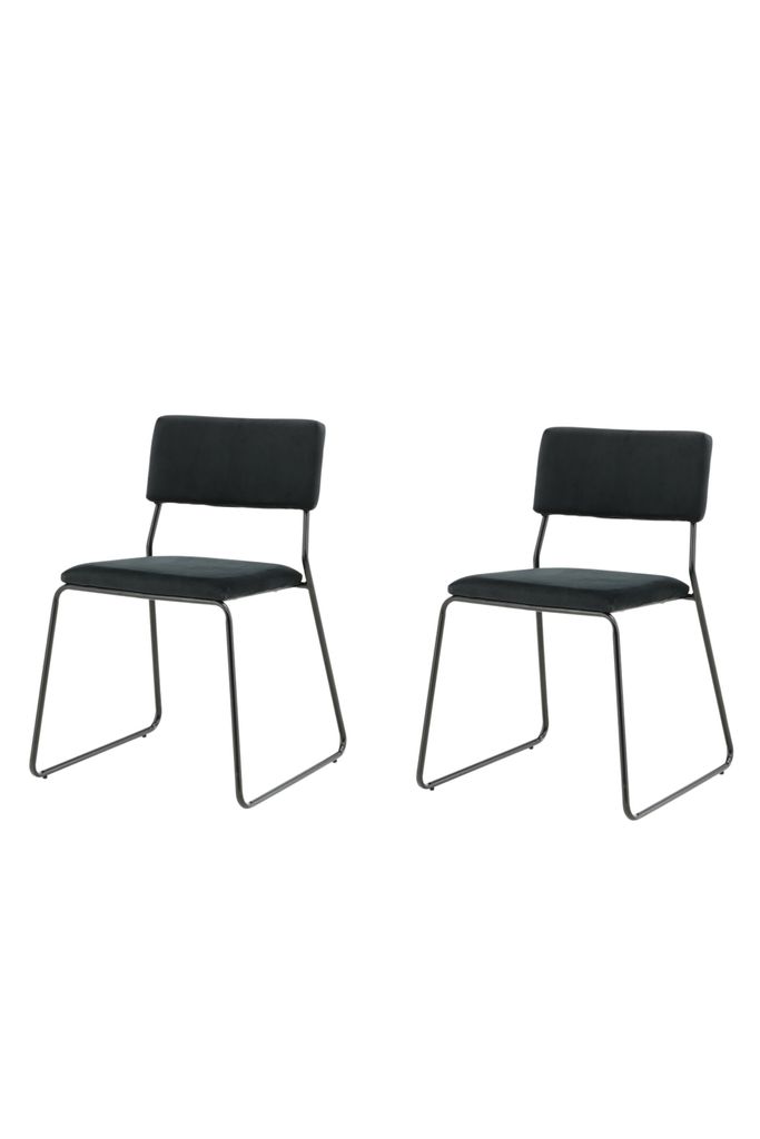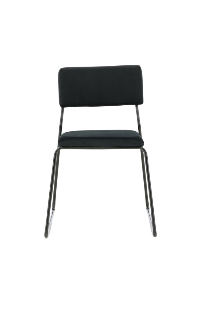 Stilren och modern matstol i svart sammet och polyesterlinne med slanka järnben, perfekt för en luftig och charmig matplats.