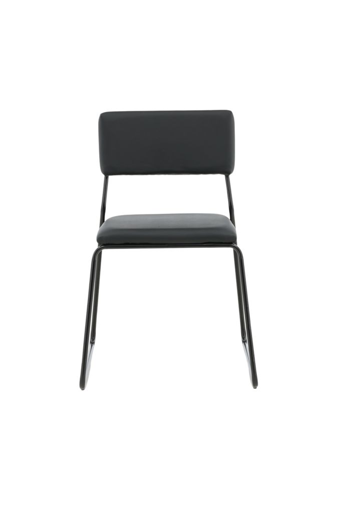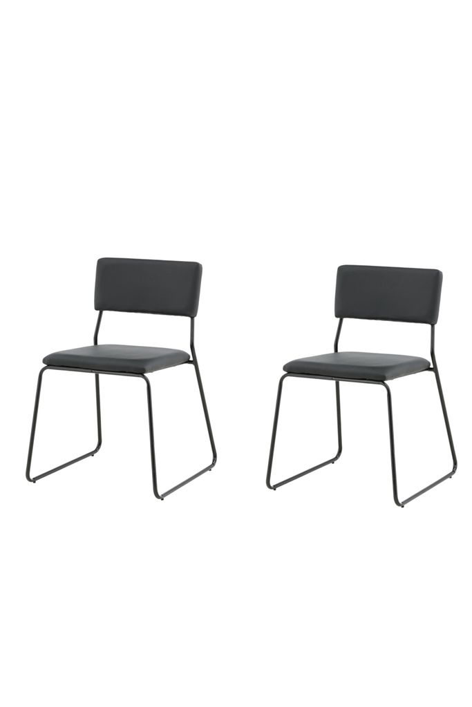 Elegant matstol i tvåpack med svart polyuretanskinn och smala stålben för en modern look.