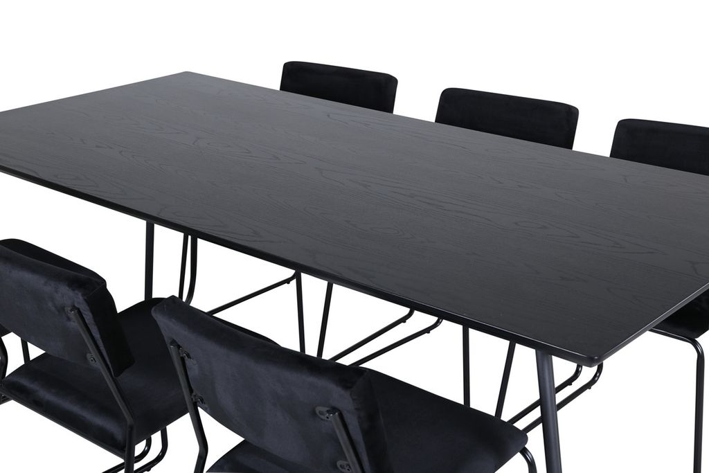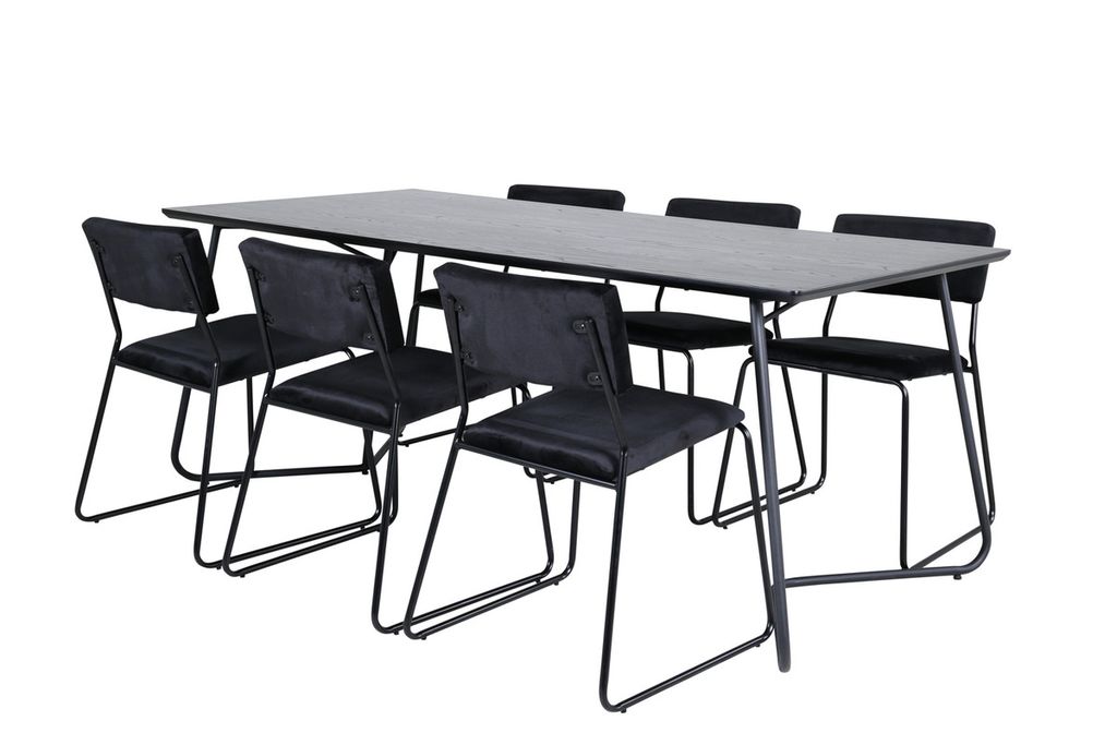 Venture Home Kenth & Petra 6 st Matstolar Svart + Rektangulärt Matbord 190 x 90 Svart