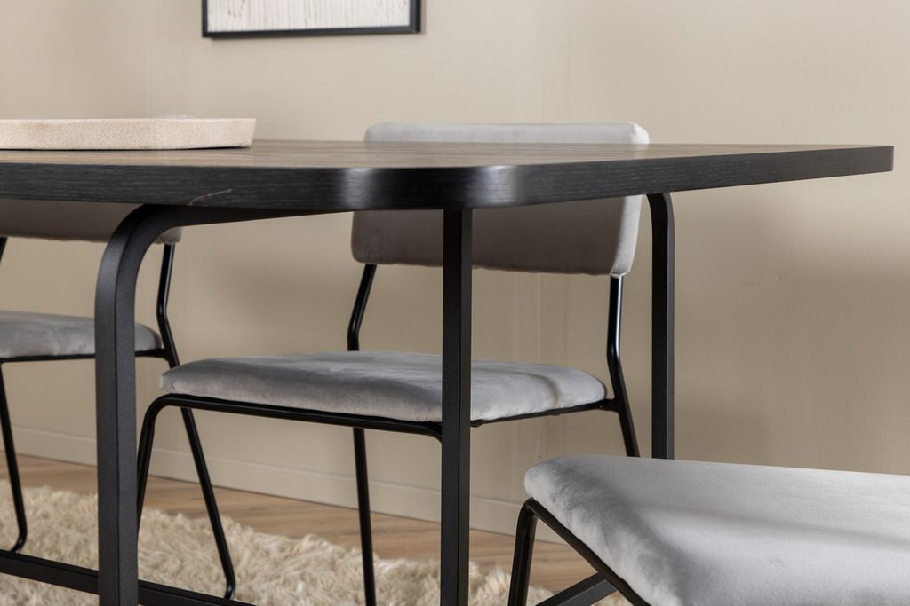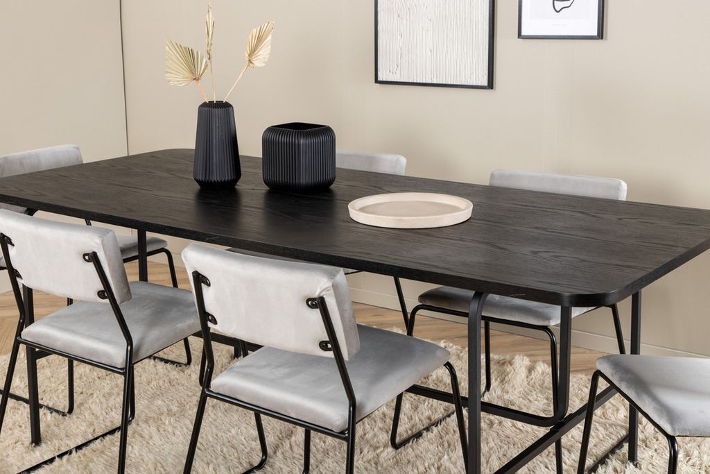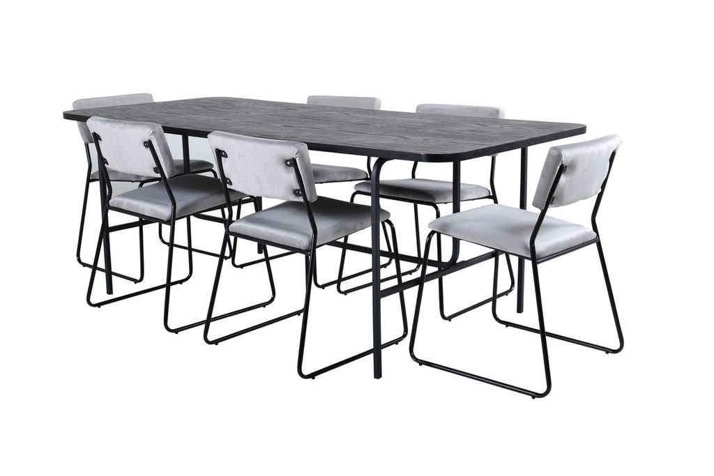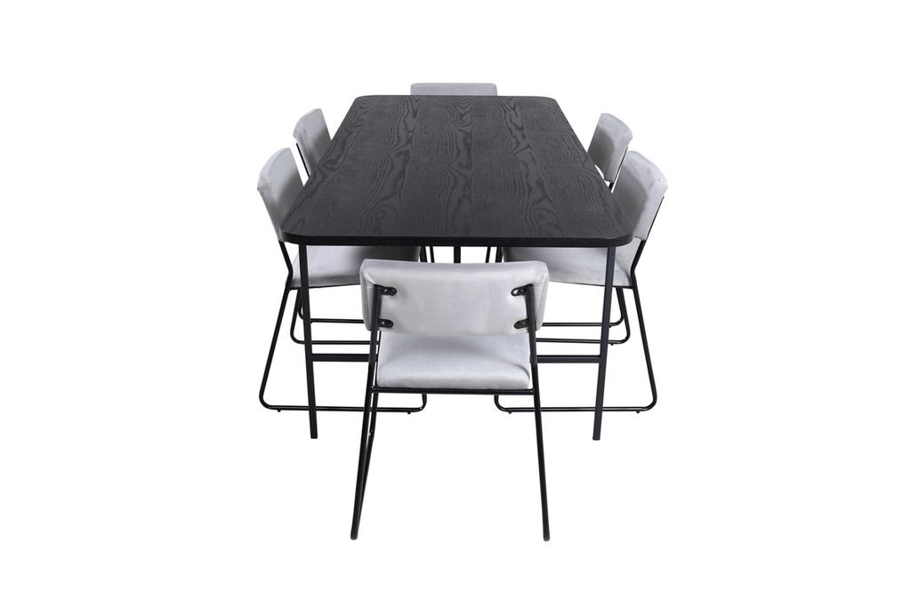 Venture Home Kenth & Uno 6 st Matstolar Grå + Rektangulärt Matbord 200 x 90 Svart