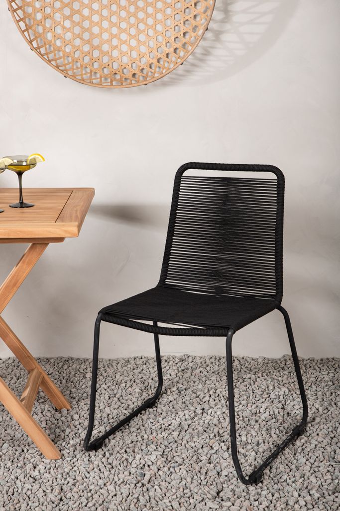- Stolens material: Svart aluminium och rep