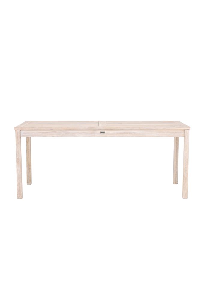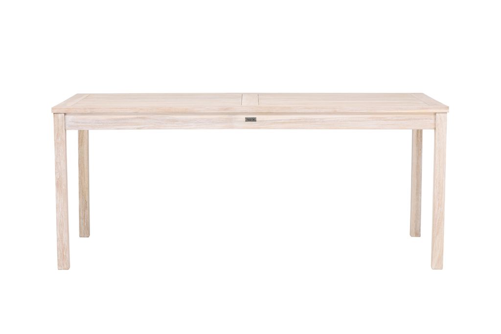 Kenya är ett imponerande rektangulärt matbord från Venture Home, tillverkat i hållbar och tålig teak. Den eleganta whitewash-finishen ger bordet en modern och fräsch känsla som enkelt matchas med olika inredningsstilar. Bordet mäter 180 cm i längd och 90 cm i bredd, vilket gör det rymligt nog att samla familj och vänner för härliga middagar, både inomhus och utomhus.