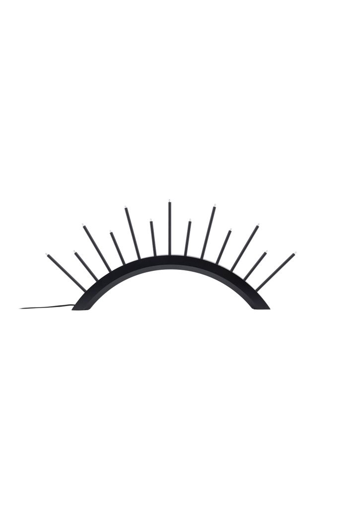 Ljusstaken är tillverkad i hållbart MDF och mäter 30x55x6 cm, vilket gör den tillräckligt stor för att skapa ett statement utan att ta över rummet. Med sina tretton små lampor, som är noggrant placerade i olika höjder längs den svarta stommen, sprider den ett behagligt och jämnt ljus som förhöjer känslan av mysighet under vintermånaderna.