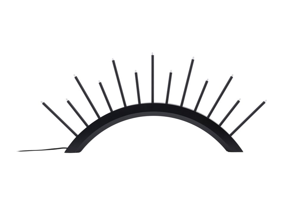Stilren svart adventsljusstake i halvcirkel med 13 små lampor, tillverkad i hållbart MDF för en mysig atmosfär.