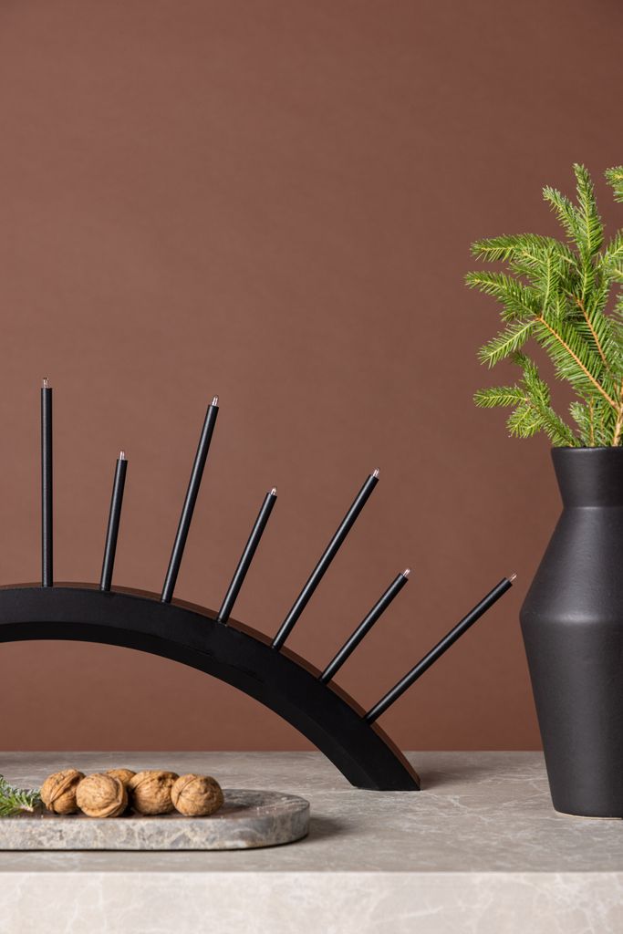 Upptäck Venture Home Kettilsås Ljusstake, en elegant och modern adventsljusstake som ger ditt hem en varm och inbjudande atmosfär. Denna unika ljusstake är designad i en stilren svart färg och formad som en halvcirkel, vilket gör den till ett iögonfallande tillskott i ditt hem.