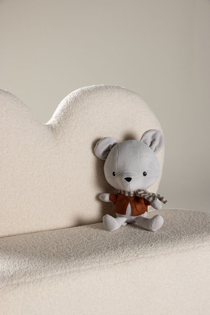 Soffan är klädd i mjuk polyester teddy, vilket ger en inbjudande känsla som barnen kommer att älska. De stabila benen i plast gör den säker och pålitlig för små barn att använda. Soffans design är både stilren och lekfull, vilket gör den till ett perfekt tillskott i vilket barnrum som helst.