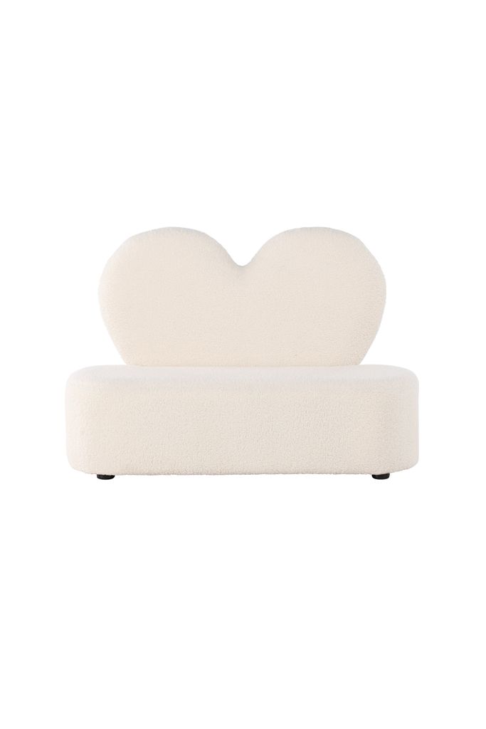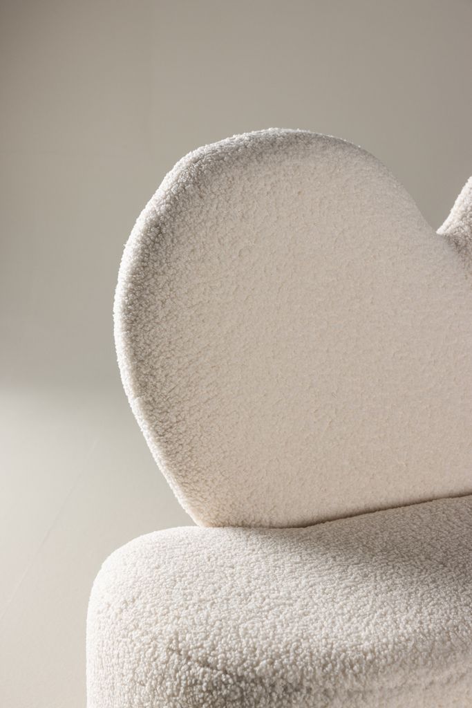 Charmig och bekväm barnfåtölj i vit teddy polyester. Perfekt för lek och avkoppling!