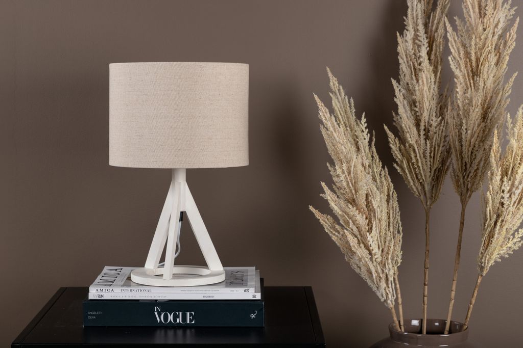Lampan är tillverkad av hållbara material som PVC, polyesterlinne och rubberträ, vilket säkerställer både kvalitet och hållbarhet. Med sina kompakta mått på 25 x 51 x 18 cm är den perfekt för mindre ytor som avlastningsbord eller sidobord.