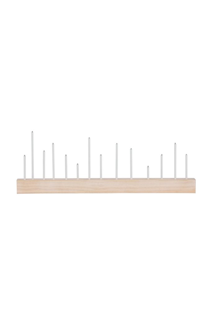 Ge ditt hem en touch av traditionell charm med Kungsberget adventsljusstake. Tillverkad i vitvättad MDF, erbjuder denna ljusstake en klassisk tolkning av adventsdekorationen. Med sina 14 lampor skapar den en varm och inbjudande glöd som förbereder ditt hem för julens förväntan.