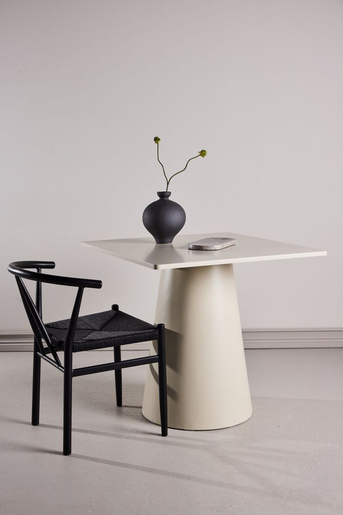 Bordets centrala bordsben inte bara förstärker den stilrena designen, utan ger också maximalt benutrymme, vilket gör det idealiskt för små utrymmen eller som ett stilfullt alternativ till klassiska bord. Den kvadratiska formen och dess kompakta mått på 80 x 80 cm gör det perfekt för både vardag och sociala stunder.
