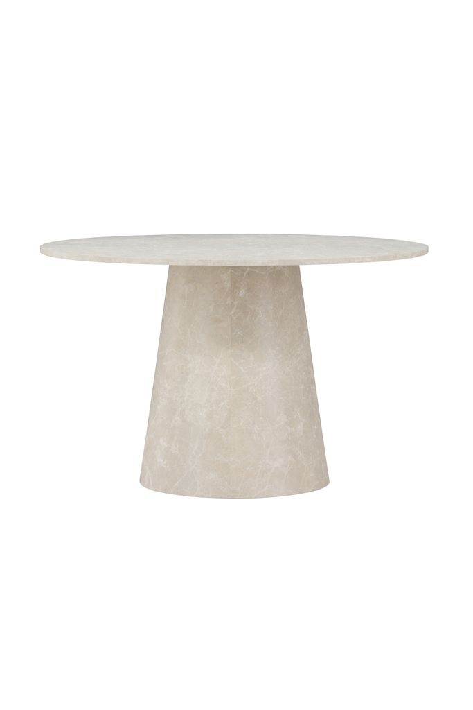Elegant matbord med beige marmorkänsla, perfekt för både intima middagar och sociala tillställningar.