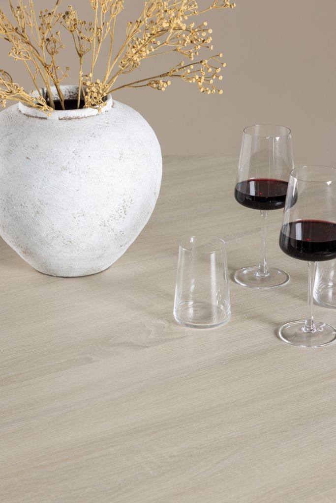 Matbordet Lanzo, tillverkat av vitvättad MDF, har en ljus och fräsch färg som ger ditt matrum en ren och inbjudande atmosfär. Med en generös diameter på 120 cm erbjuder bordet gott om plats för både mat och samtal. Dess runda form främjar en balanserad och social miljö, medan den robusta konstruktionen säkerställer långvarig användning och stabilitet.