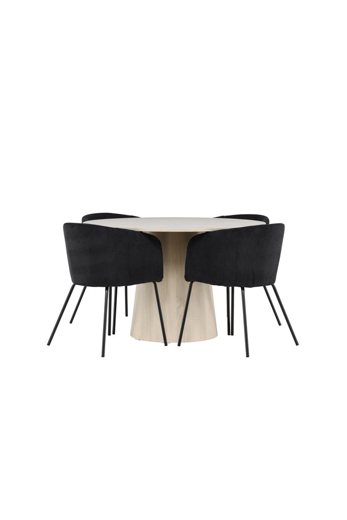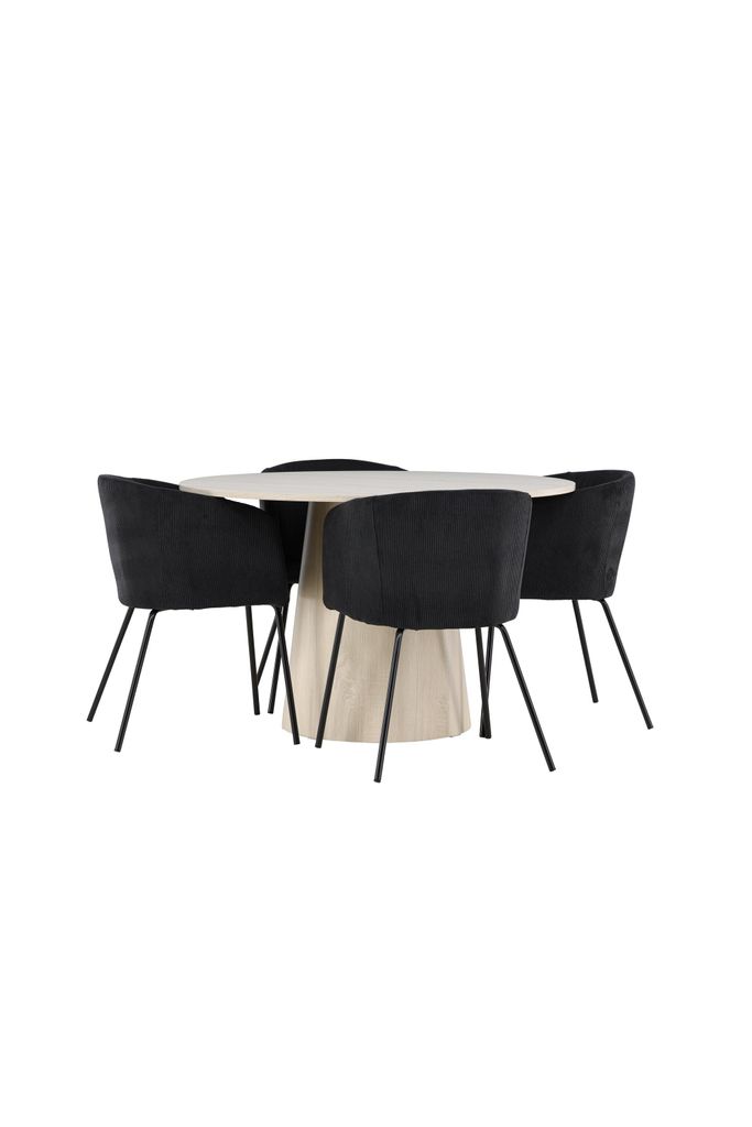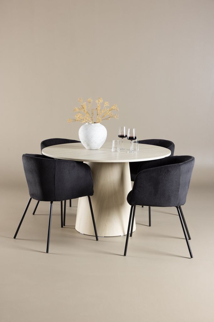 Matbordet Lanzo, tillverkat av vitvättad MDF, har en ljus och fräsch färg som tillför en ren och inbjudande atmosfär till ditt matrum. Med en generös diameter på 120 cm erbjuder bordet gott om plats för mat och samtal, samtidigt som dess runda form skapar en balanserad och social miljö. Bordets robusta konstruktion säkerställer långvarig användning och stabilitet.