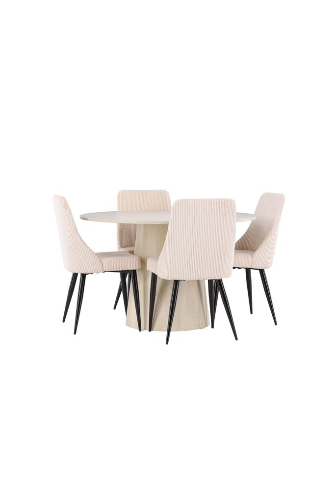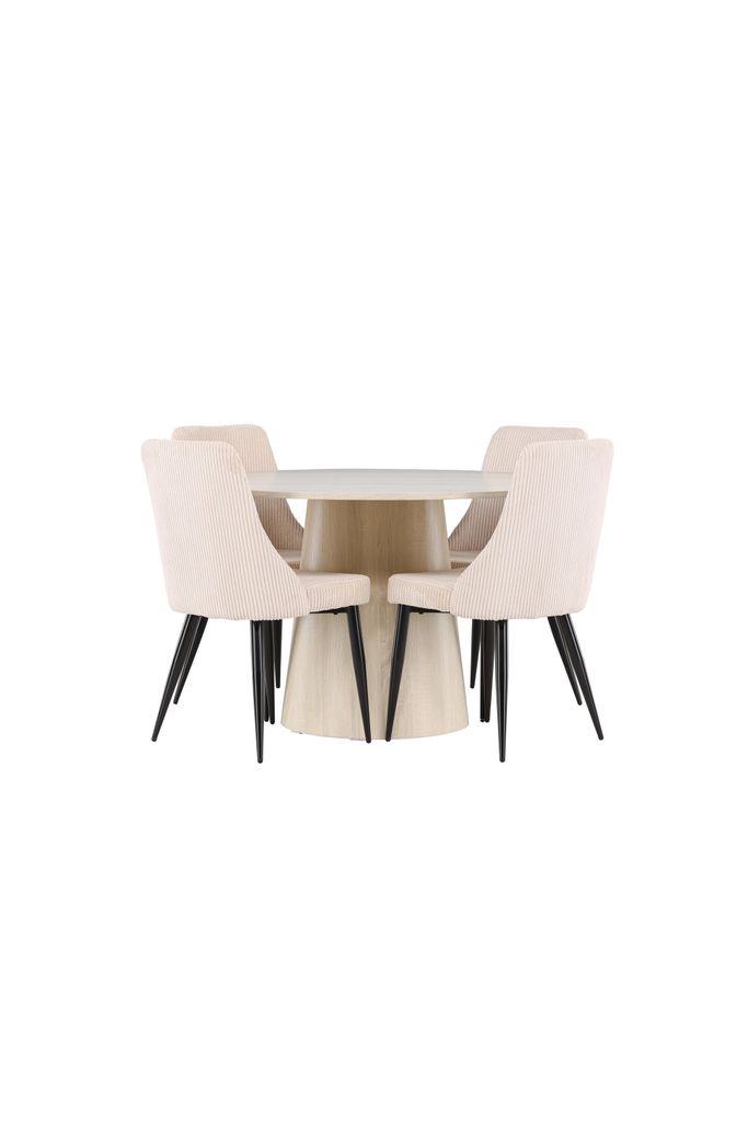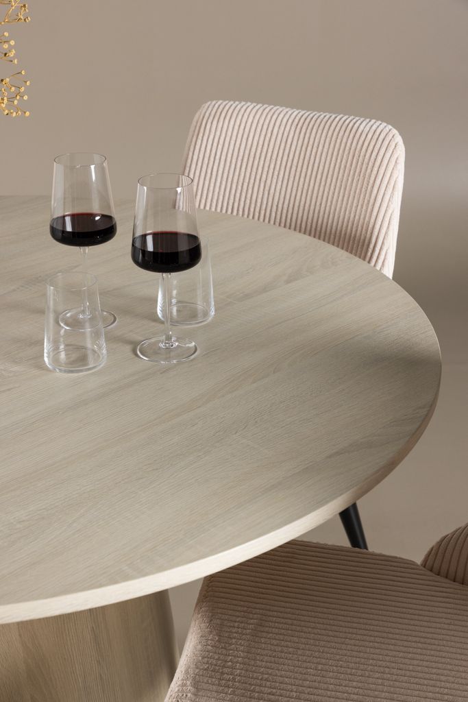 Lanzo Matbord erbjuder en ljus och fräsch design med en generös diameter på 120 cm, vilket ger gott om plats för både mat och samtal. Bordets runda form främjar en balanserad och social atmosfär, medan dess robusta konstruktion garanterar stabilitet och hållbarhet.