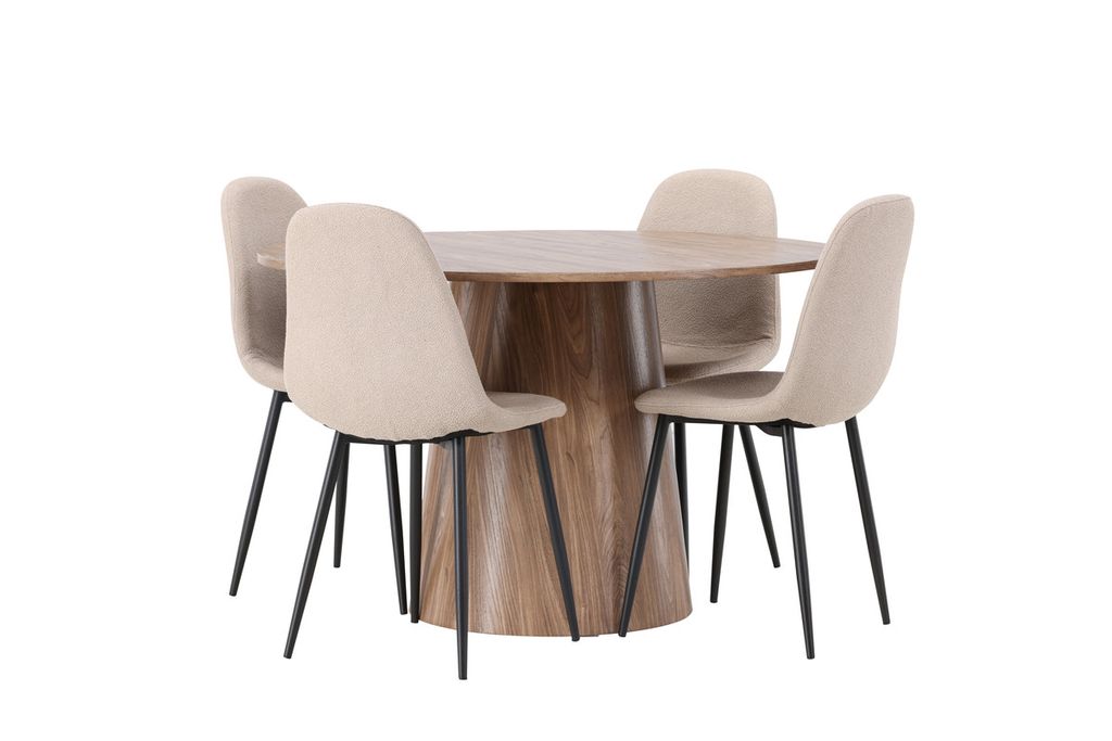 Venture Home Lanzo & Polar Runt Matbord ⌀120 Natur + 4 st Matstolar Beige