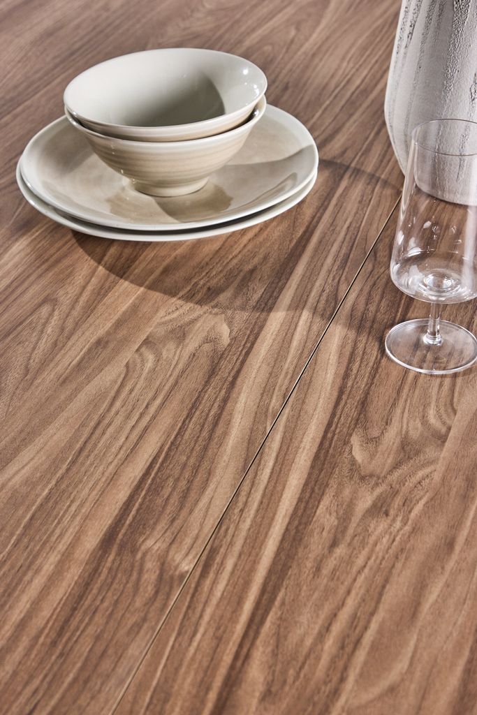 Bordets yta visar upp ett elegant mönster som ger liv och rörelse till rummet. Den jordnära kulören och den synliga trätexturen förstärker bordets moderna och stilrena utseende, vilket gör det till en idealisk mittpunkt i vilket rum som helst.
