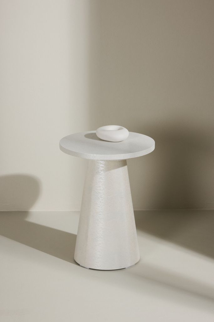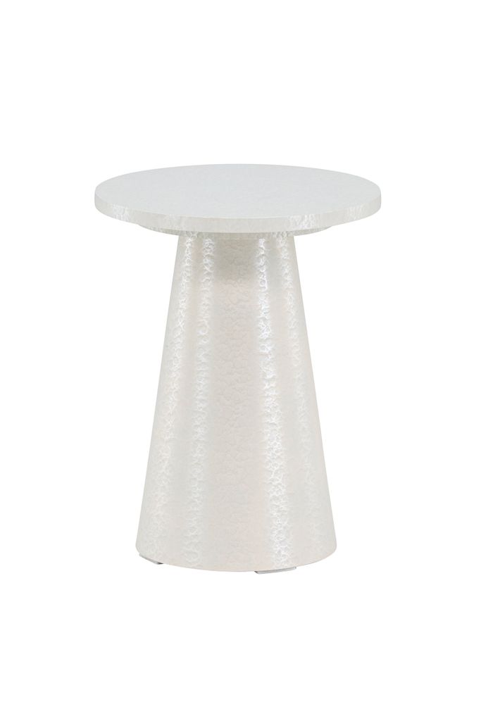 Sidobordet Lanzo från Venture Home är den perfekta kombinationen av stil och funktionalitet. Tillverkat i slitstark MDF med en elegant högblank vit yta, detta sidobord är en modern detalj som lyfter inredningen i alla rum. Dess runda form och koniska bas ger ett lekfullt och samtidigt sofistikerat intryck.