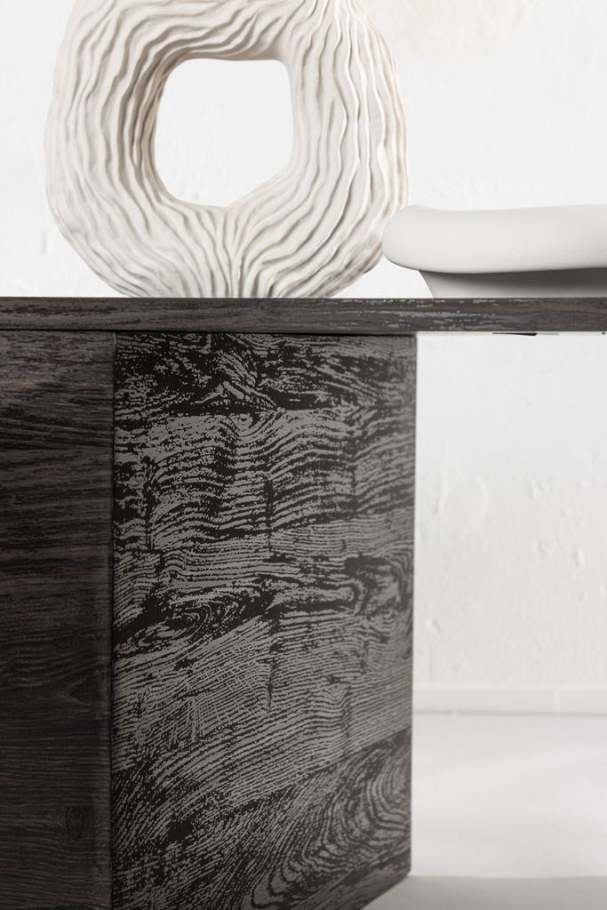 Bordet kräver enkel montering och är ett utmärkt val för den som söker en trendig och unik möbel till sitt hem. Dess moccafärgade yta ger en varm och inbjudande känsla, medan den strukturerade träeffekten i veneer ger ett naturligt och äkta intryck.