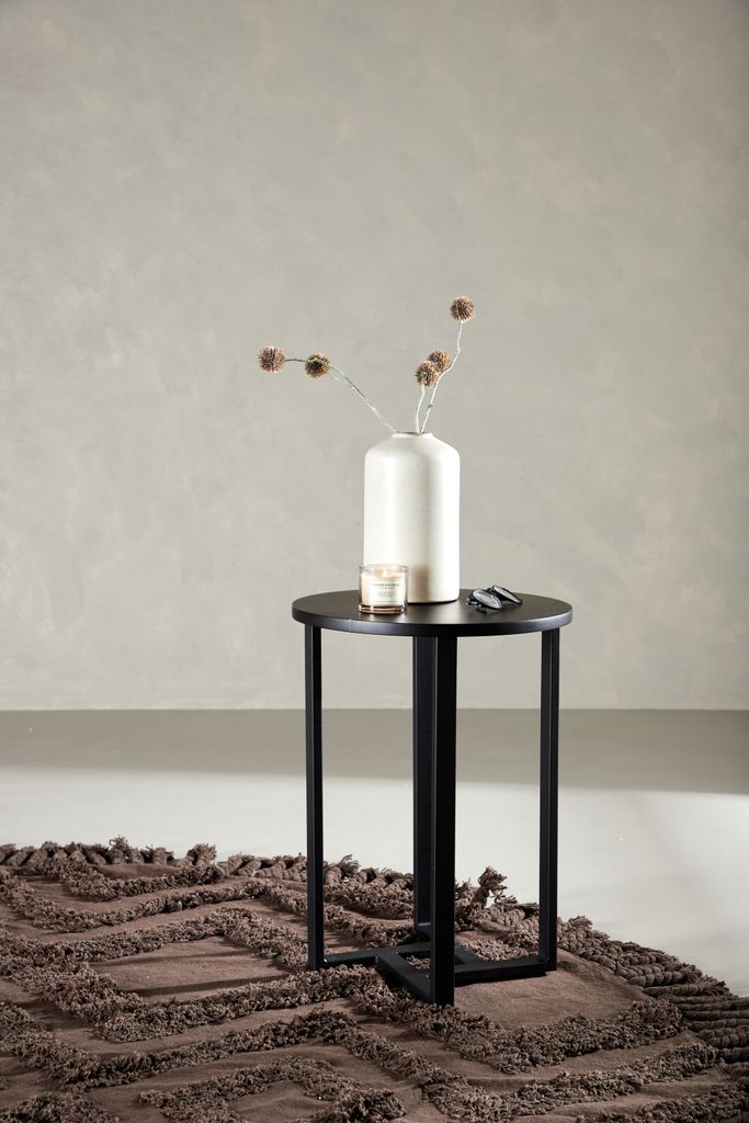 Elegant runt soffbord i svart MDF och stål. Perfekt för små utrymmen och som sidobord.