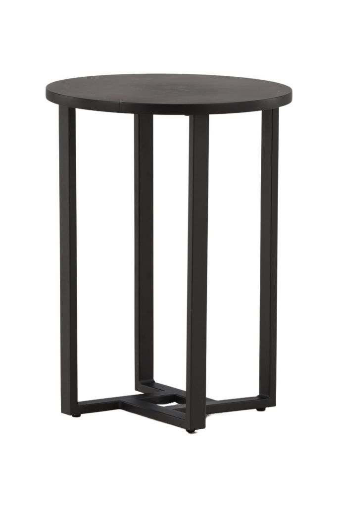 Venture Home Lawton soffbord kombinerar funktion och stil i en kompakt design, idealisk för små utrymmen. Den runda bordsskivan är tillverkad i svart MDF, vilket ger en modern och stilren känsla. Den smala stommen i stål är elegant och robust, och dess unika design där benen sammanlänkas i botten ger en slående detalj.