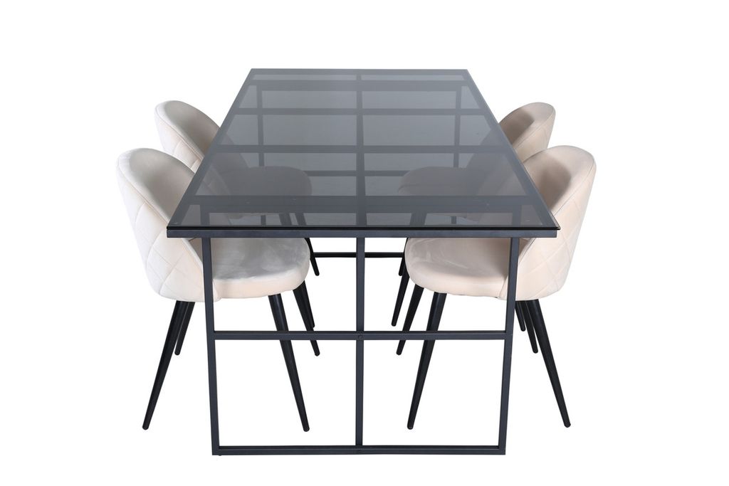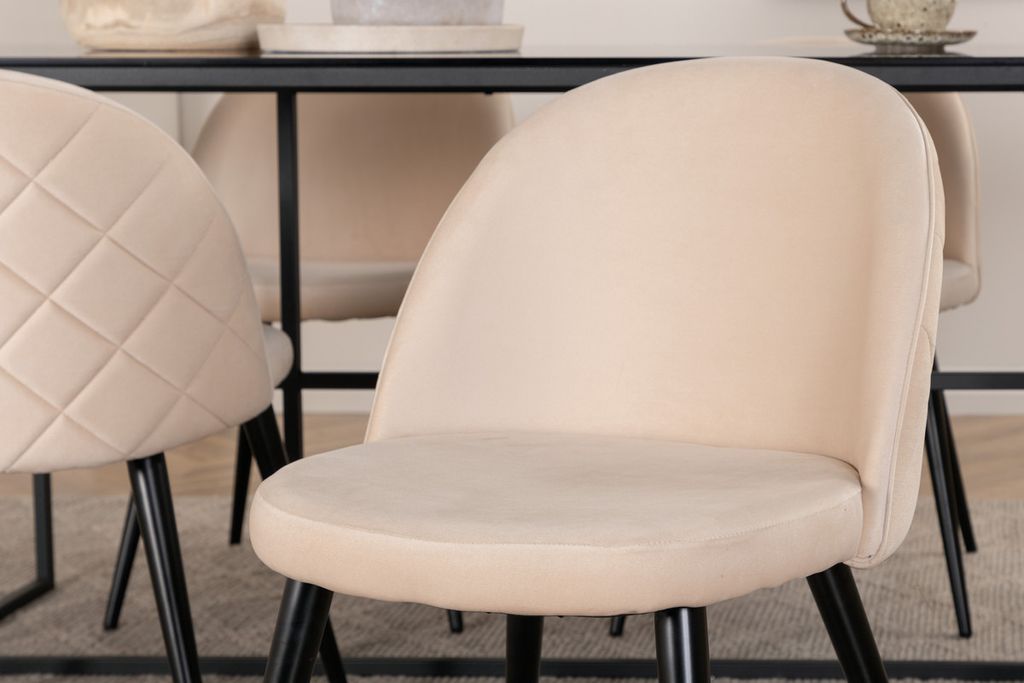 Venture Home Leif & Velvet Rektangulärt Matbord 200 x 90 Svart + 4 st Matstolar Beige
